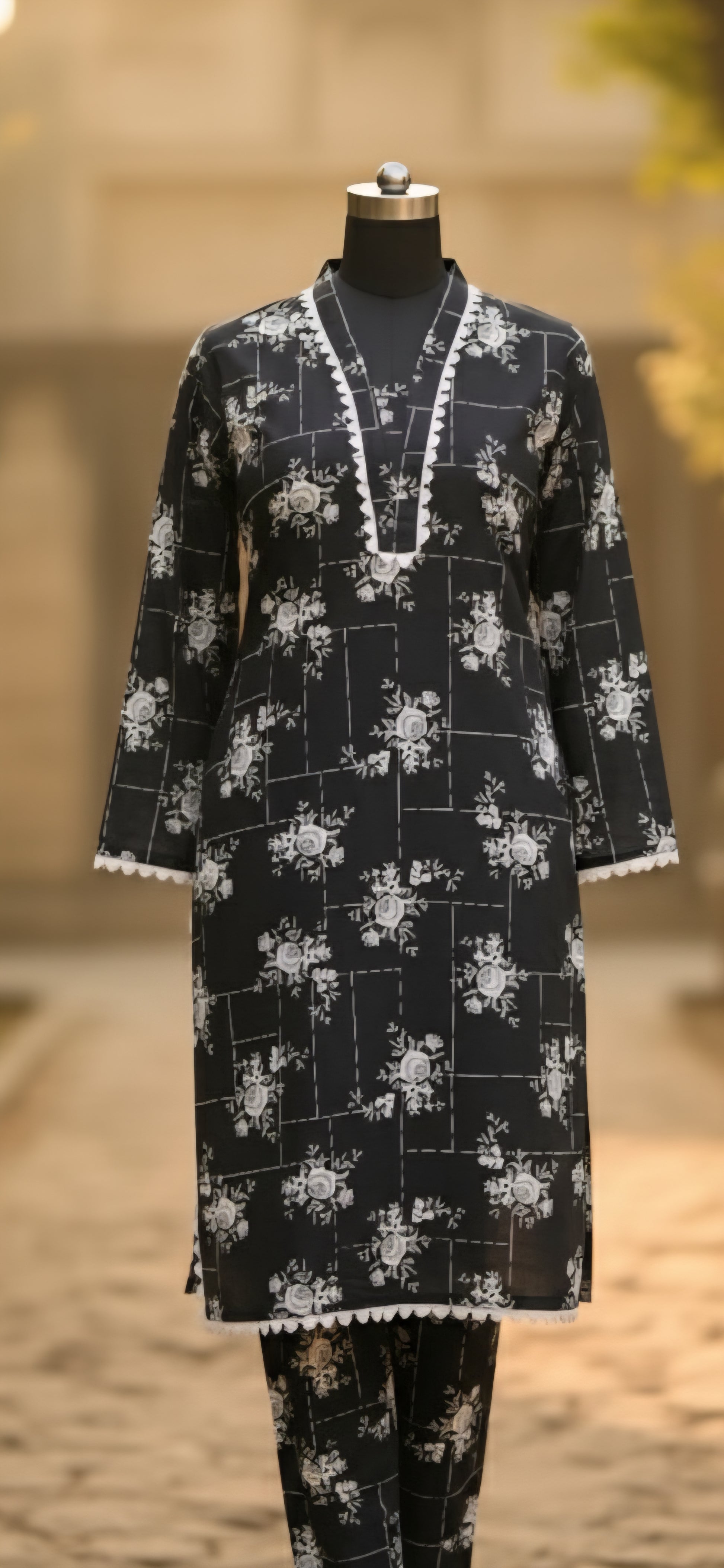 2pc cotton Black and white printed suit