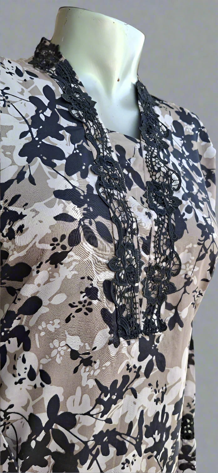 Shirt: A straight short length round daman shirt. V shape full collar or band with elegant lace on neck design. Sleeves are bell in shape and full in length.