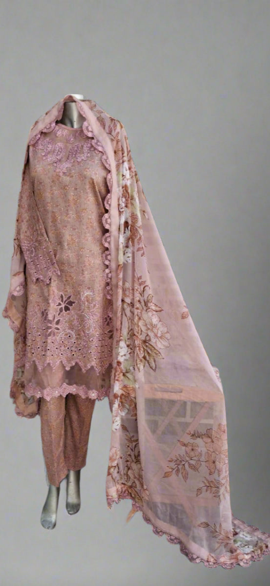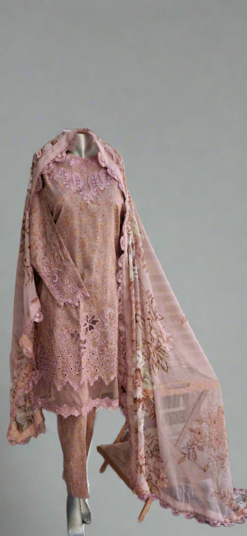 3pc Lawn Blush Pink printed suit with chiffon dupatta